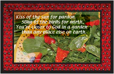The digital art and enclosed information in six cards focus on flowers, herbs, and two surprising recipes, and feature six of Ginna's own photos from her gardens.